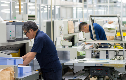 製本業務は、お客様の手元に届くまでの最終段階で検品を行いつつ、製品へと仕上げます。