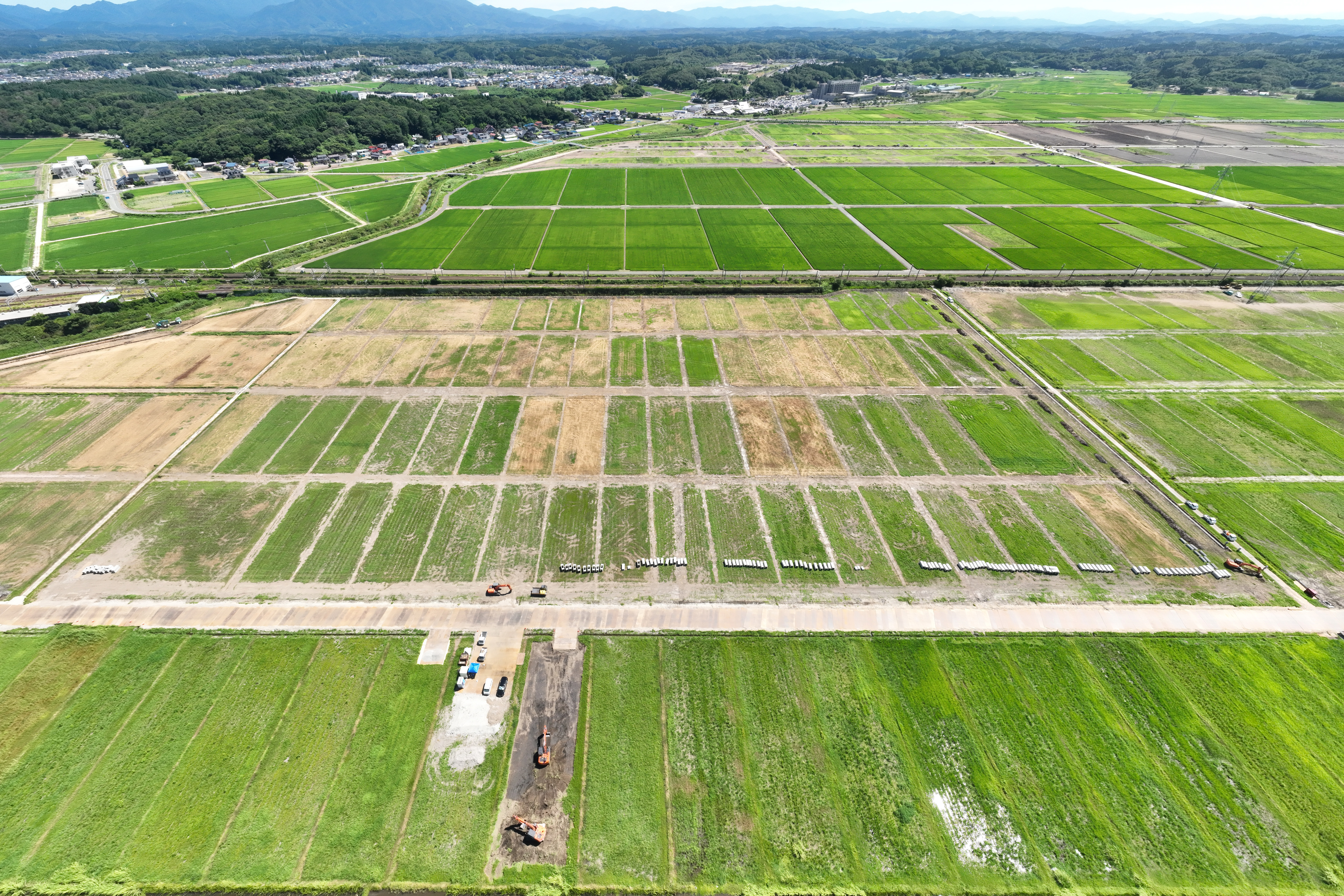 2025年08月、伊藤工業株式会社様にて行われている秋田市仁井田西部地区のほ場整備工事のドローン撮影を行いました。この撮影は工事の進捗に合わせて月1回撮影を行います。 なお、こちらの写真は「パノラマ合成」を行ってます。写真を取り扱う技術を持ち合わせている当社ならではのサービスとなります。 伊藤工業様 2025年08月 ドローン撮影 秋田市仁井田西部地区